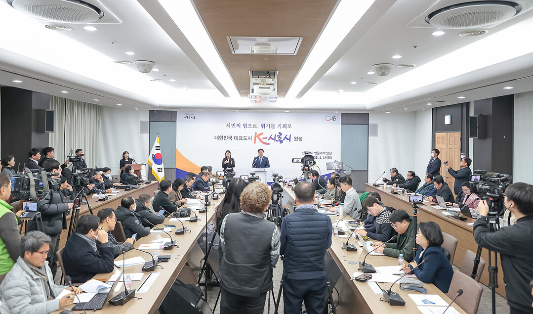 임병택 경기 시흥시장이 14일 시청 글로벌센터1에서 신년맞이 언론과의 만남을 개최하고, 민생과 미래를 비전으로 한 올해 시정 운영 계획을 밝혔다.