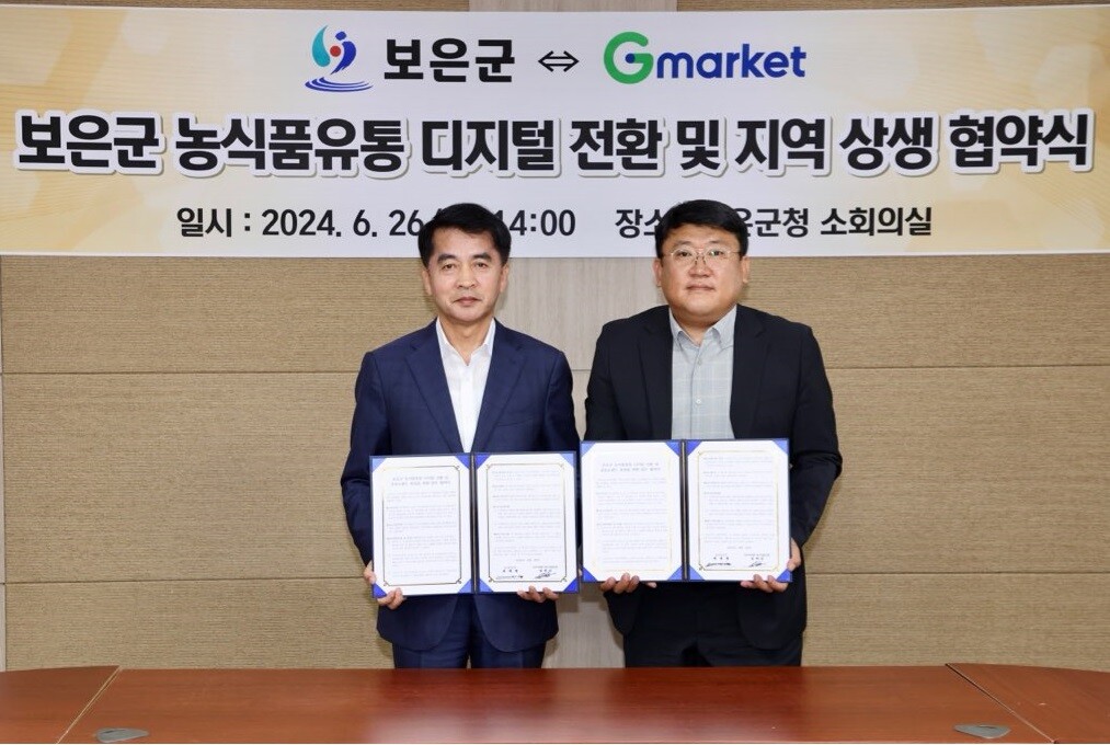 G마켓은 지난 26일 충청북도 보은군과 '농식품 유통 디지털 전환 및 판로 확대'를 위한 업무협약을 체결했다고 27일 밝혔다.