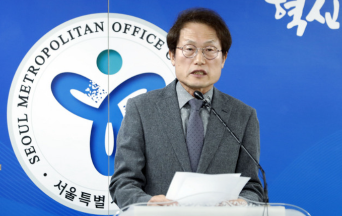 ▲ 조희연 서울시 교육감이 지난 5일 서울 종로구 서울시교육청에서 한국유치원총연합회 설립 허가 취소를 발표하고 있다. 서울시교육청은 지난 22일 한유총의 사단법인 설립허가를 취소했다.[뉴시스]