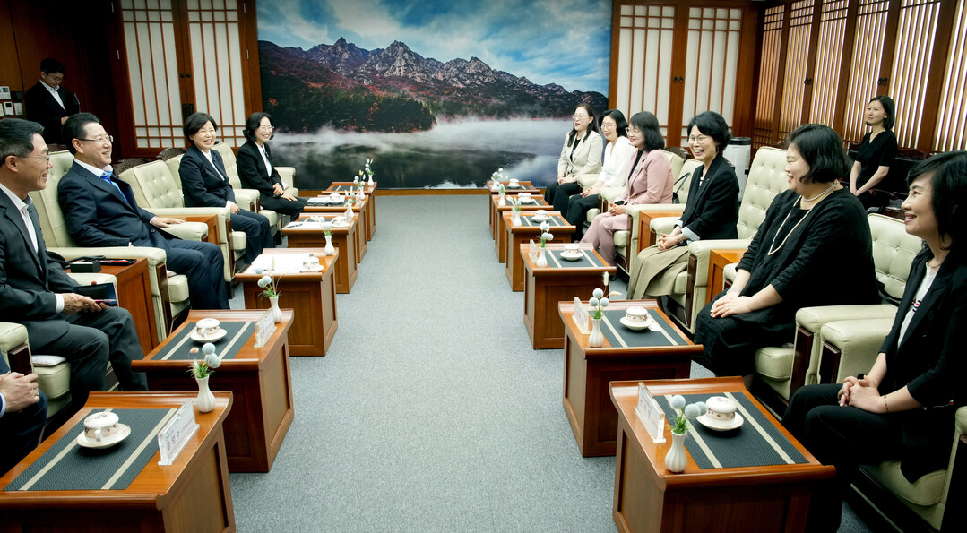 | ▲ 김영록 전라남도지사가 21일 도청 접견실에서 새롭게 구성된 전남여성정책포럼 임원진과 도정간담회를 갖고 여성가족정책과 도정방향에 대해 논의하고 있다. [전남도 제공] |