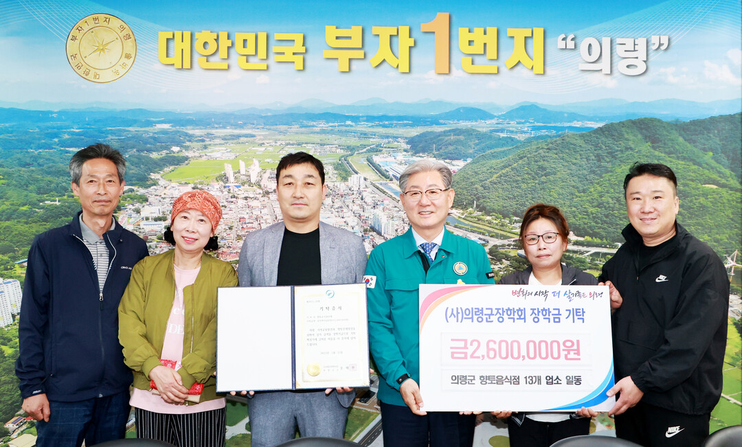 장학기금 기탁자에는 △의병기념사업회(170만 원) △의령군여성단체협의회(100만 원) △푸드트럭 잇츠고(대표 오동우, 50만 원) 등이 이름을 올렸다.