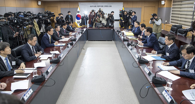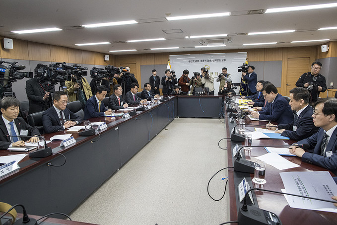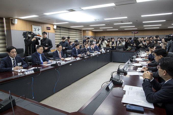 카드사 대표들이 9일 오후 서울 종로구 정부서울청사에서 열린 카드산업 경쟁력 제고 및 고비용 영업구조 개선방안 논의를 위한 카드사 CEO 간담회에 참석해있다.