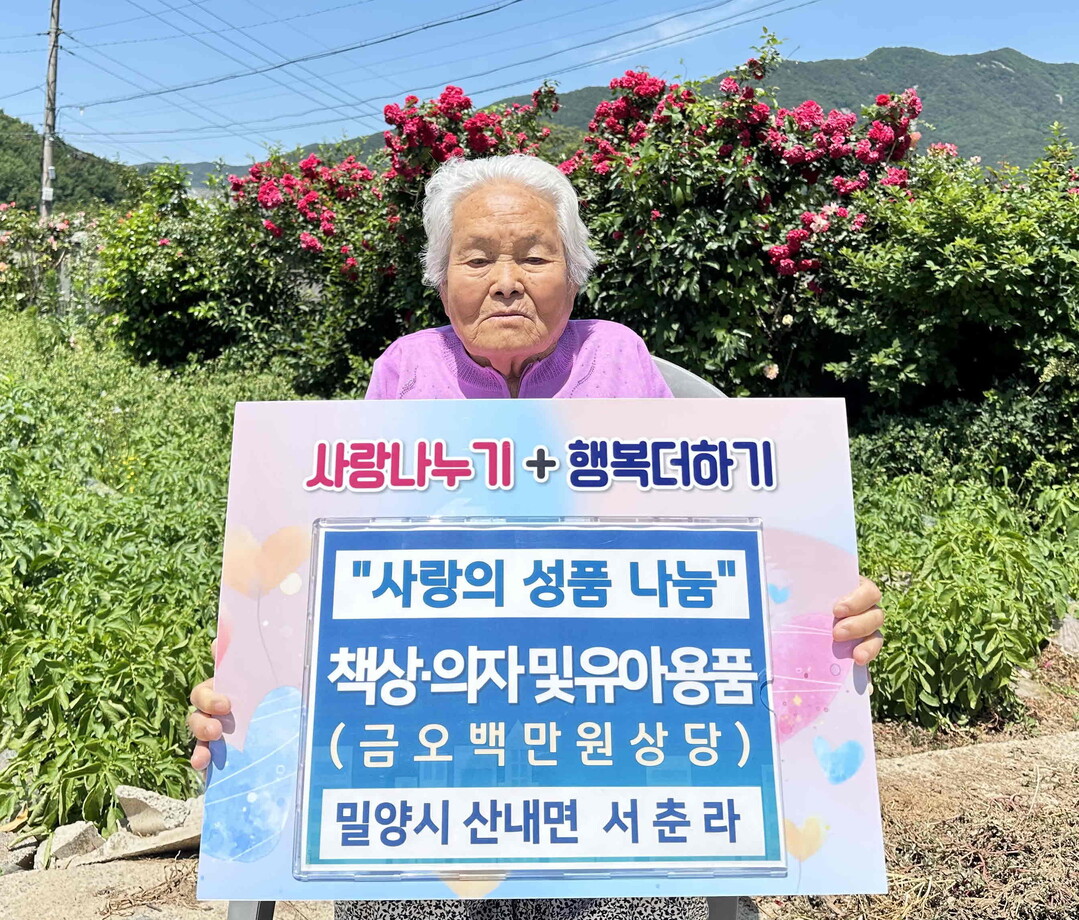 밀양시 서춘라 어르신, 아동양육시설에 500만원어치 성품 기탁