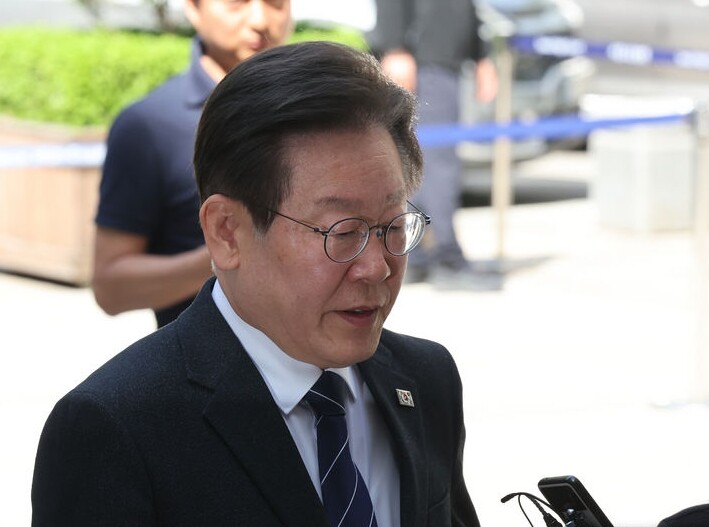 | ▲ 더불어민주당 이재명 대표가 23일 서울 서초구 중앙지방법원에서 열린 '대장동 배임 및 성남FC 뇌물 의혹' 22차 공판에 출석하며 취재진 질문에 답하고 있다. [뉴시스] |