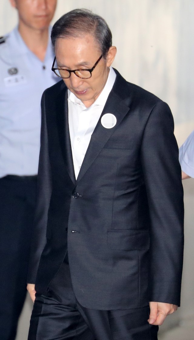 ▲ 이명박 전 대통령이 지난 7일 오전 서울 서초구 서울중앙지법으로 출석하고 있다. [뉴시스]
