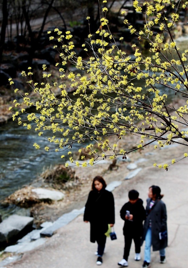 ▲ 낮과 밤의 길이가 같아진다는 절기 '춘분(春分)'인 지난 21일 서울 청계천에 산수유가 피어있다. [뉴시스]