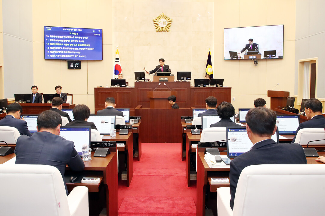 이날 '우선주차구역 설치 및 운영에 관한 조례안'(손제란 의원 대표발의)과 '국제 자매도시 결연 동의안'을 포함한 16건의 의안, '무기질 비료 가격 안정대책 대정부 건의문'(강창오 의원 대표발의), '공공언어 개선 촉구 대정부 건의안'(정희정 의원 대표발의) 등의 안건을 처리했다.