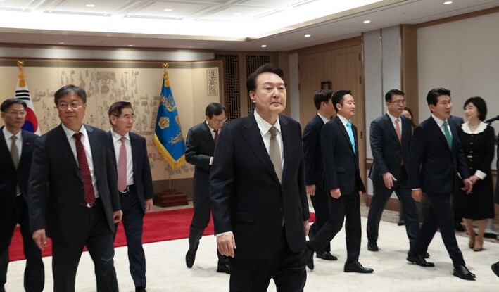 | ▲ 윤석열 대통령이 4일 서울 용산 대통령실 청사에서 열린 정책실장 및 수석비서관 임명장 수여식을 마친 뒤 환담장으로 이동하고 있다. [뉴시스] |
