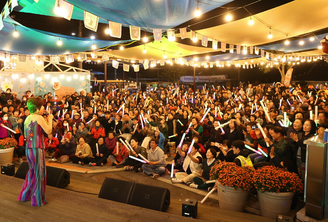 | ▲ 강진군 불금불파에 가수 김연자씨가 아모르파티를 부르며 흥을 돋구고 있다. [강진군 제공] |