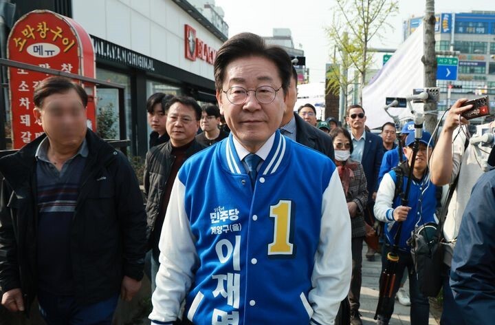 | ▲ 제22대 총선 인천 계양을 후보 이재명 더불어민주당 대표가 7일 오전 인천 계양구 계산역 인근에서 거리 유세를 하고 있다. [뉴시스] |
