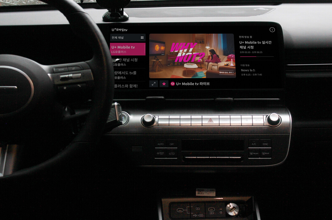 | ▲ LG유플러스가 현대차·기아에 ‘U+모바일tv’를 제공한다. 차량 내 화면으로 ‘U+모바일tv’가 서비스되고 있다. [LG유플러스 제공] |