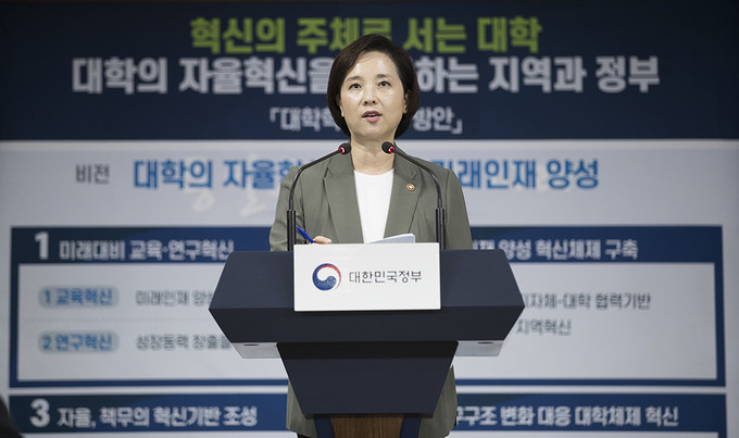 유은혜 사회부총리 겸 교육부 장관은 6일 오후 정부서울청사에서 이 같은 내용을 담은 대학혁신 지원방안을 발표했다.