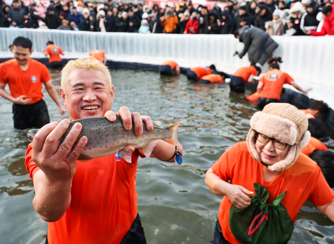 | ▲ 10일 개막한 '2026 얼음나라 화천산천어축제' 산천어 맨손잡기. [이상훈 선임기자] |