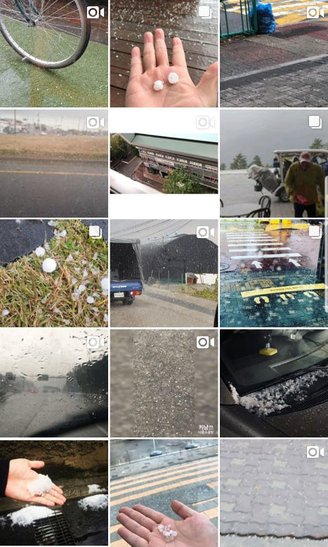 시민들은 "하늘에서 웬 날벼락" "태어나서 이런 우박은 처음 본다"며 우박 인증샷을 SNS에 공유했다.