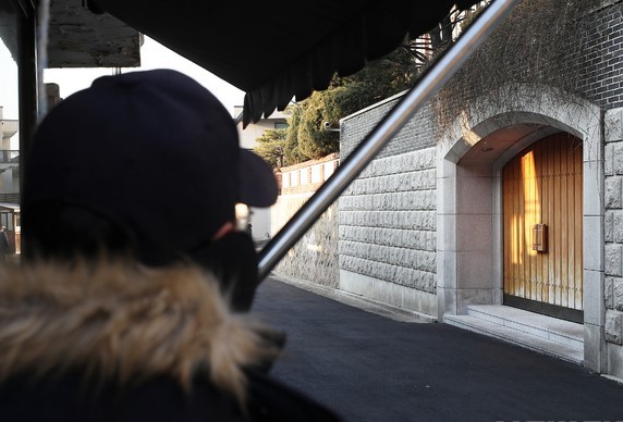 ▲ 7일 오전 서울 서대문구 전두환 전 대통령 자택 앞에서 의경들이 근무를 서고 있다. 고 조비오 신부의 명예를 훼손한 혐의로 기소된 전 전 대통령은 독감·고열을 이유로 이날 광주에서 열린 재판에 출석할 수 없다는 입장을 밝혔다. [뉴시스]