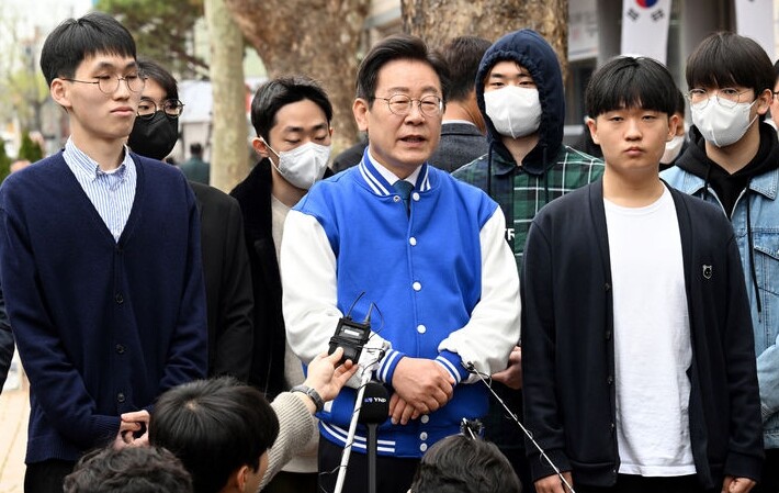 이 대표는 카이스트 학생들과 함께 사전투표를 했다. 그는 투표 후 취재진과 만나 사전투표를 대전에서 한 이유에 대해 "'입틀막' 당한 학생들과 함께, 과학기술의 중요성, 정부 정책의 무지함 이런 것들을 지적하고 싶었다"고 밝혔다.