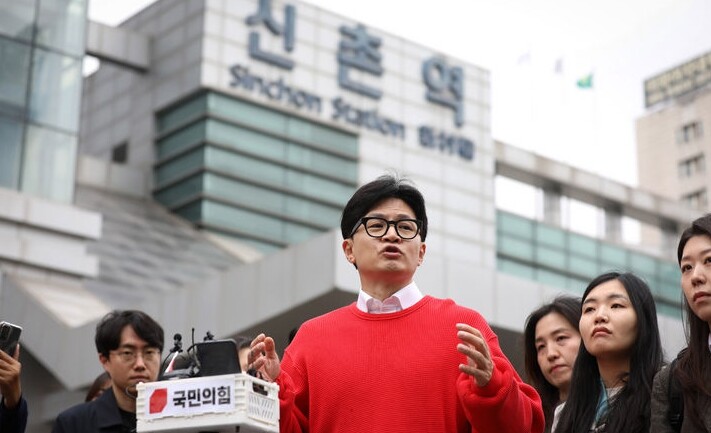 | ▲ 국민의힘 한동훈 비대위원장이 5일 서울 서대문구 신촌동주민센터에 마련된 사전투표소에서 투표를 마친 뒤 취재진의 질문에 답하고 있다. [뉴시스] |