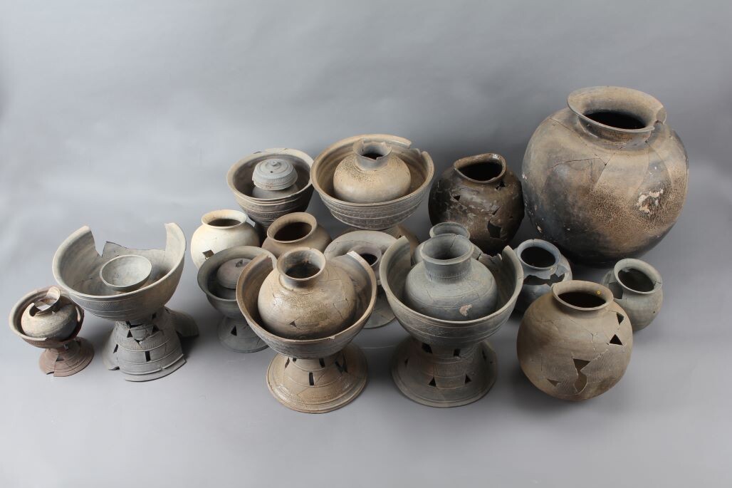 출토된 토기는 26점이다. 길이 3.1m 폭 1.6m 대형목곽묘의 유물 부장공간으로 추정되는 곳에서 확인됐다. 토기의 종류는 △그릇받침 8점 △항아리 14점 △뚜껑 2점 △굽다리접시 1점 △큰항아리 1점 등이다.