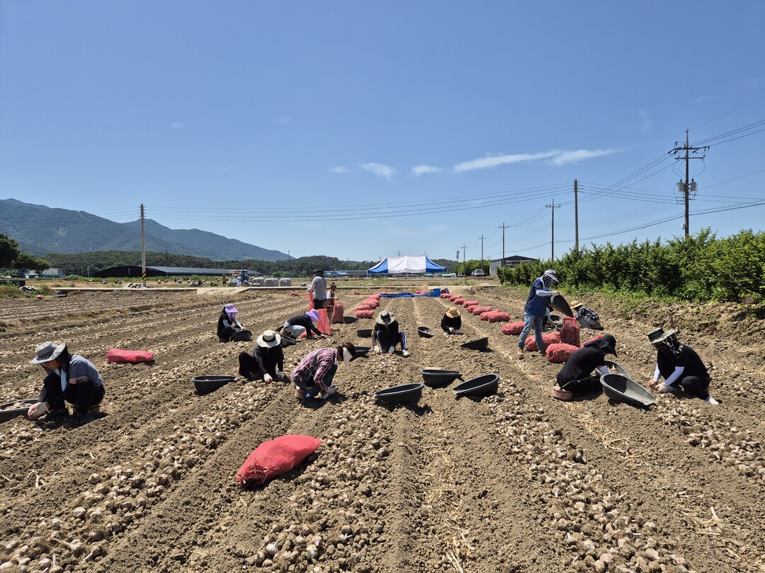 창녕군 공무원들 고암면 마늘밭에서 수확 일손돕기 '구슬땀'