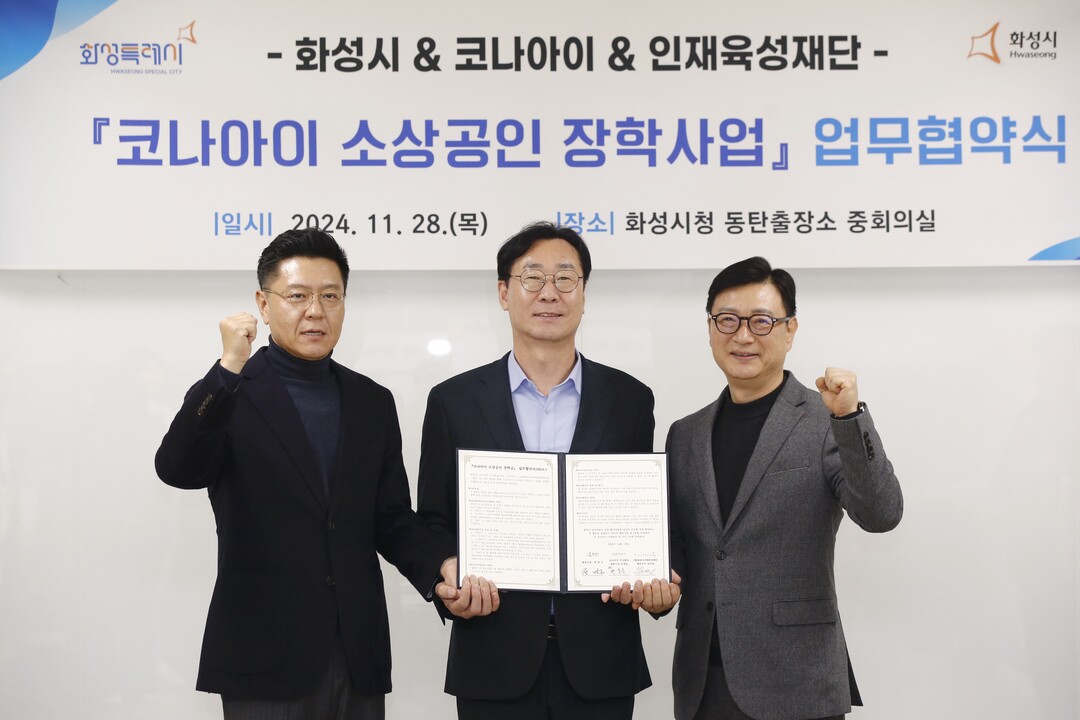 경기 화성시는 지난 28일 지역화폐 운영대행사인 코나아이주식회사와 화성시인재육성재단과 함께 '코나아이 소상공인 장학사업' 추진을 위한 업무협약을 체결했다고 29일 밝혔다.