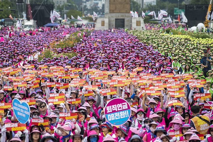 안명자 교육공무직 본부장은 "우리가 투쟁에 나선 것은 입사경로로 차별받는 것을 용납할 수 없기 때문"이라며 "임용시험을 거치지 않았으니 이 정도만 받으면 된다는 사회적 인식을 바꾸고자 하는 것"이라고 설명했다.