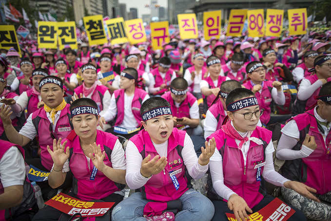 학교비정규직 노동자들이 정규직화와 공정임금제 이행을 촉구하며 3일부터 사흘간 총파업에 돌입했다.