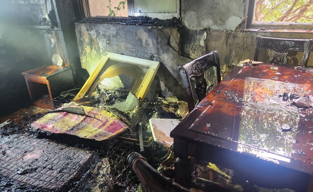 ▲ 27일 낮 울산 울주군 진하해수욕장 인근에서 발생한 모텔 객실 화재 현장 모습 [울산소방본부 제공]