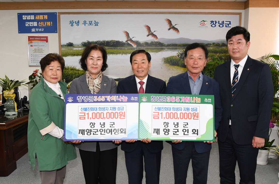 지난달 산청 산불 진화 과정에서 숨진 경남 창녕군청 소속 희생자(진화대원 3명, 공무원 1명)와 이재민을 돕기 위한 성금 행렬이 잇따르고 있다. 성금 모금은 오는 30일까지 이어진다.