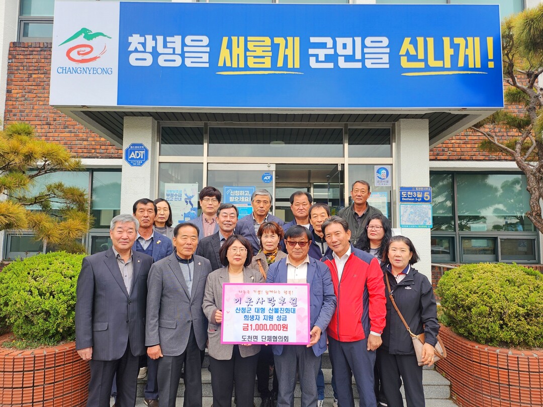 도천면 단체협의회(회장 한판석)와 ㈜온승건설(대표 이승재)은 16일 산청 대형 산불 진화대 희생자 지원을 위한 성금을 각각 100만원씩 기탁했다.