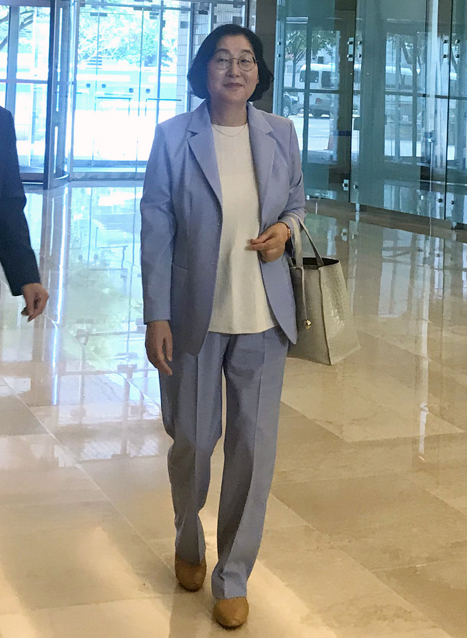 ▲ 이정옥 여성가족부 장관 후보자가 10일 오후 1시 30분께 서울 종로구 이마빌딩에 마련된 국회 인사청문회 준비 사무실로 출근하고 있다. [강혜영 기자]