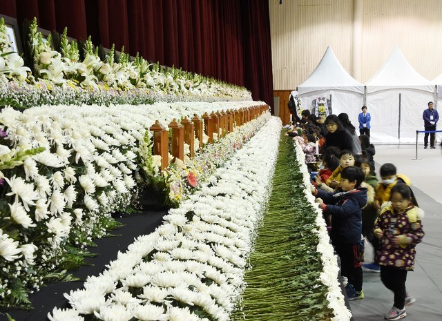 ▲ 47명이 숨진 경남 밀양시 세종병원 화재참사 엿새째인 지난해 1월31일 오전 조은어린이집 원생들이 삼문동 문화체육회관 합동분향소를 찾아 조문하고 있다. [뉴시스]