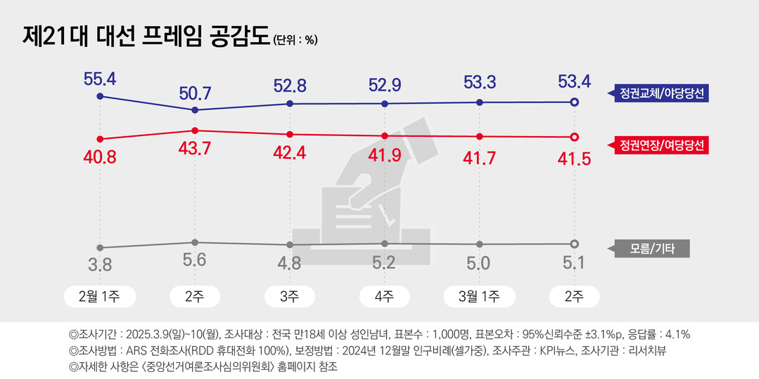 대선 프레임…정권 교체 53.4% 정권 연장 41.5%