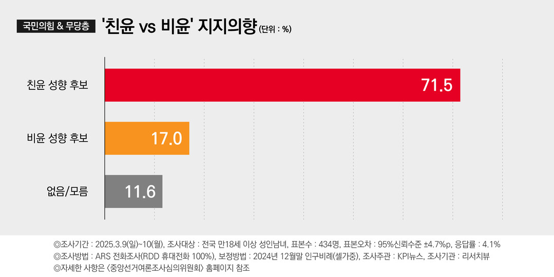 與 지지층·무당층 선호 후보…친윤계 71.5% 비윤계 17.0%
