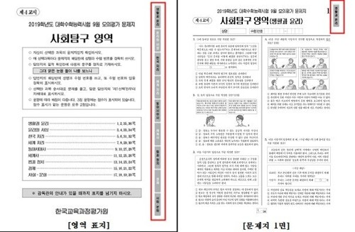 특히 이번 시험에서는 4교시 탐구영역 문제지 오른편에 수험생 본인이 선택한 과목을 쉽게 찾을 수 있도록 과목명이 색인 형식으로 표시된다.