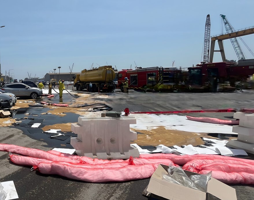 당국은 발생 30여분이 지난 오전 11시 8분께 파손된 송유관 밸브를 잠가 추가 누출을 막고, 방제된 폼과 기름을 수거하는 수습 작업을 벌이고 있다.
