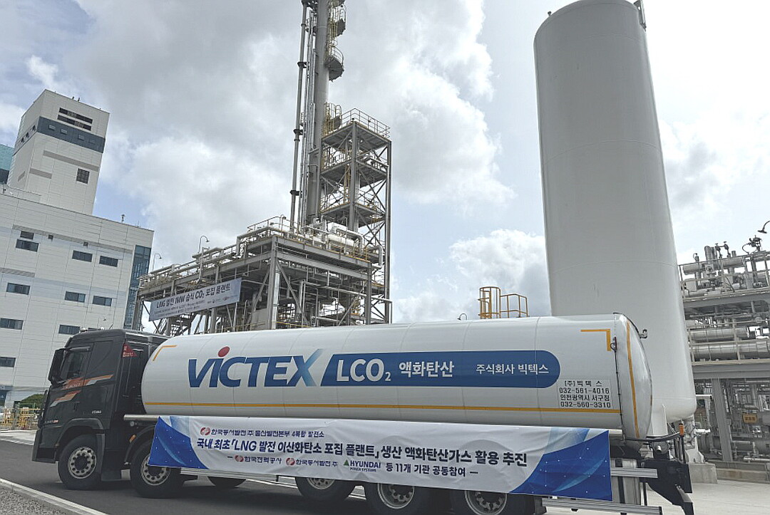 한국동서발전은 울산발전본부 부지에 설치된 국내 최초 천연가스 발전 이산화탄소 포집설비에서 생산한 액화탄산가스를 반출, 다양한 국내 산업에 활용을 시작했다고 11일 밝혔다.