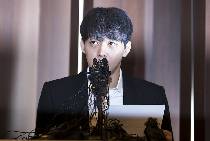 ▲ 남양그룹 창업주 외손녀 황하나(31) 씨의 마약 투약 혐의와 연관 있는 연예인으로 지목된 가수 겸 배우 박유천이 지난 10일 오후 서울 중구 프레스센터에서 열린 긴급 기자회견에서 입장발표를 하고 있다. [정병혁 기자]