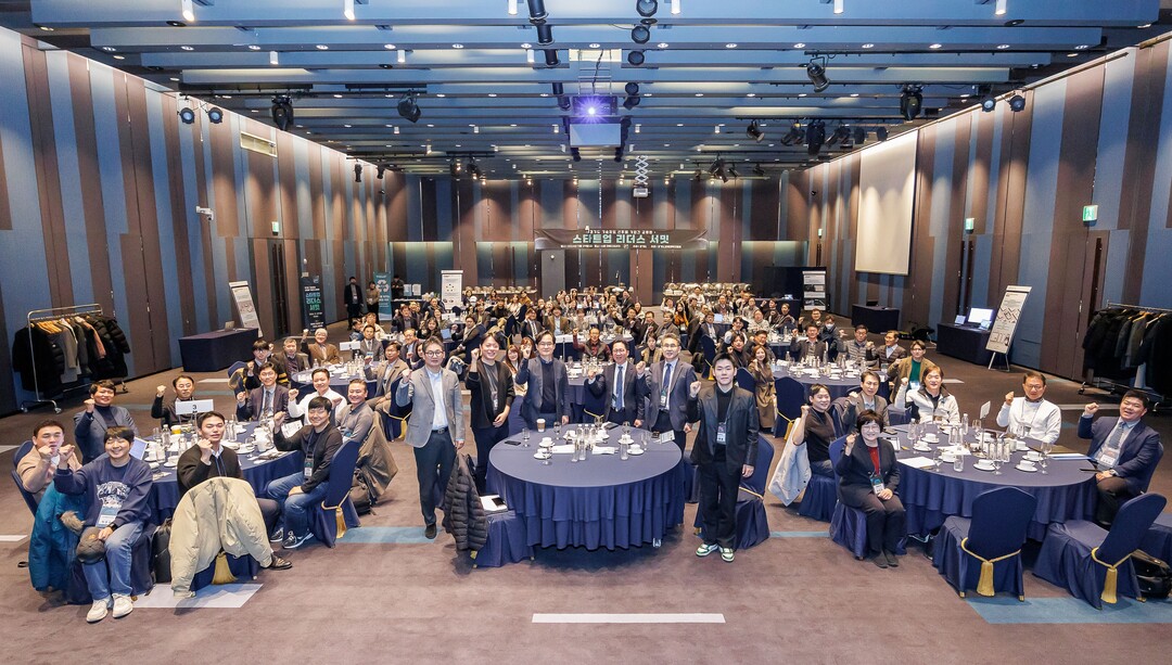 ▲ 지난달 29일 열린 '스타트업 리더스서밋' 행사 참가자들이 기념촬영을 하고 있다. [경과원 제공]