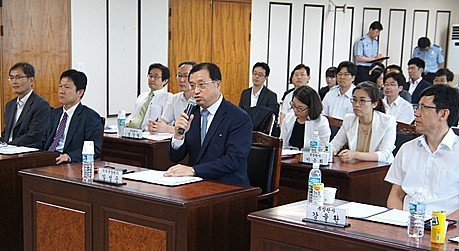 ▲ 지난 2014년 7월 경기도 의왕시 서울구치소를 방문한임성근(가운데)  당시 서울중앙지법 형사수석부장판사가 교도관들과 간담회를 하고 있다. [뉴시스]