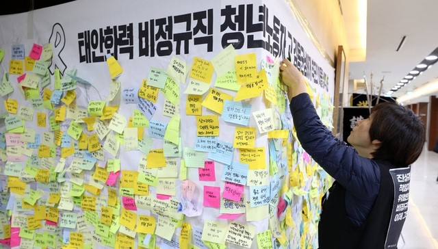 이들 단체는 "태안화력발전소는 탄을 저장하는 저탄장을 옥내에 두는데, 건물 높이가 50m 이상"이라며 "근무자들은 저탄장 하역기를 점검·확인해야 하는데 안전장치가 있어도 항상 추락 위험에 시달린다"고 밝혔다.
