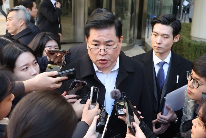 | ▲ 유동규 전 성남도시개발공사 본부장이 30일 서울 서초구 서울중앙지법 앞에서 취재진 질문에 답하고 있다. [뉴시스] |