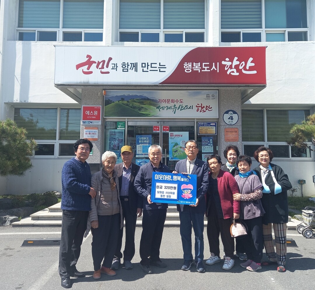 경남 함안군은 칠원읍 서상마을 주민들이 7일 영남지역 산불 피해복구를 위해 성금 320만 원을 기탁했다고 8일 밝혔다.