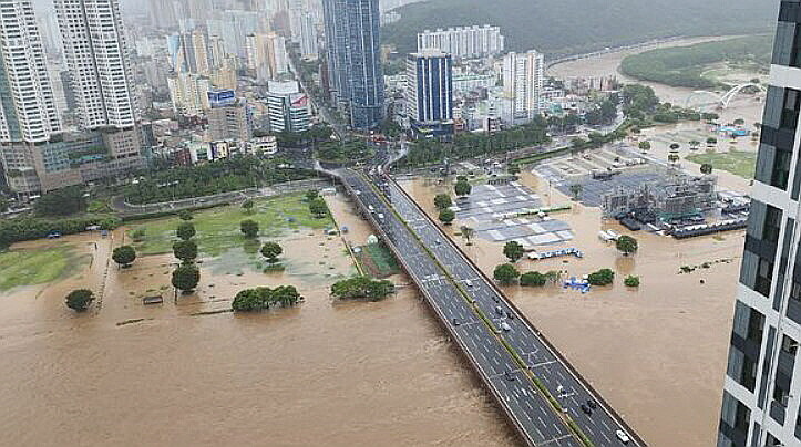 ▲ 19일 오전 울산 태화교 일대 침수 현장 모습 [울산소방본부 제공]
