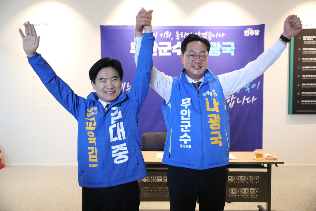 민형배 더불어민주당 전남광주통합특별시장 후보와 김대중 교육감 예비후보가 같은 날 나광국 무안군수 예비후보 캠프를 찾으며 '통합'과 '미래교육' 의제가 동시에 부각되는 모양새다.