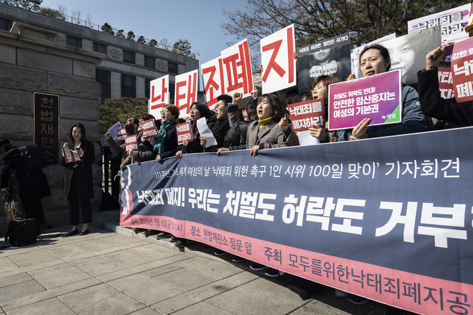 공동행동은 입장문에서 "111주년 세계 여성의 날을 맞이하는 이 시점에도 임신을 중지한 여성을 형사 처벌하고, 범죄화하는 형법 낙태죄는 여전히 남아 여성의 인권을 억압하고 있다"면서 "낙태죄를 폐지하고, 여성과 태어날 아이를 비롯한 모든 시민들이 온전한 삶을 살아갈 수 있도록 변화를 만들어야 한다"고 촉구했다.