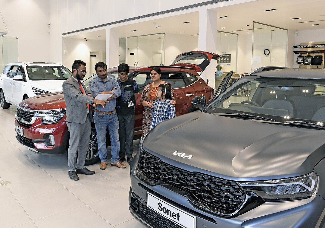 | ▲ 기아 인도 전시장에서 고객들이 차량을 살펴보고 있다. [현대자동차그룹] |