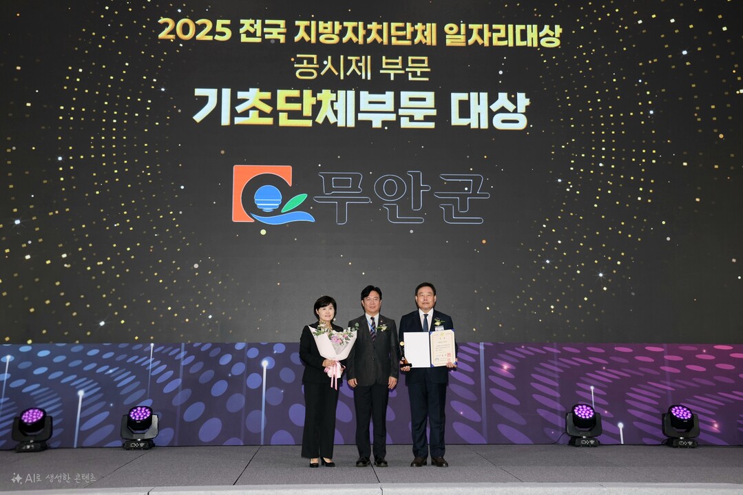 전남 무안군이 고용노동부 주관 '2025년 전국 지방자치단체 일자리대상'에서 일자리 공시제 부문 대상을 수상하며 국무총리 기관표창과 인센티브 사업비 8500만 원을 확보했다.