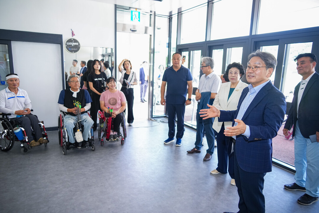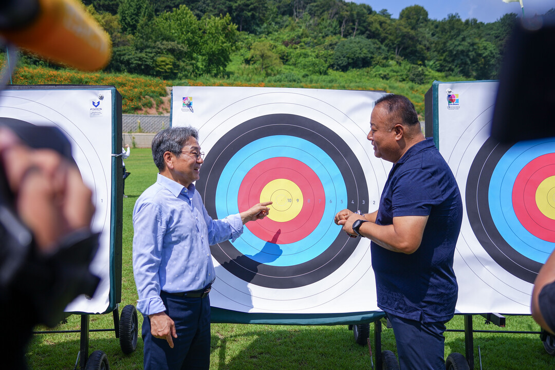 | ▲ 강기정 광주광역시장이 20일 오전 2025 광주 세계양궁선수권대회를 앞두고 남구 광주국제양궁장을 찾아 성공개최를 위한 최종 시설점검을 하고 훈련 중인 남구청 남자양궁팀 선수단을 격려하고 있다. [광주광역시 제공] |