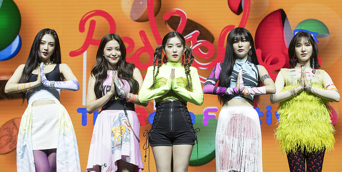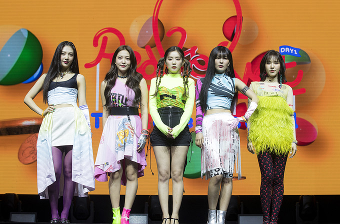 그룹 레드벨벳이 19일 오후 서울 용산구 블루스퀘어에서 열린 미니앨범 'The ReVe Festival Day 1' 쇼케이스에서 포즈를 취하고 있다.