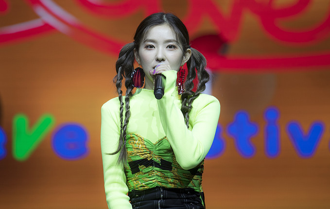 그룹 레드벨벳 아이린이 19일 오후 서울 용산구 블루스퀘어에서 열린 미니앨범 'The ReVe Festival Day 1' 쇼케이스에서 질문에 답하고 있다.